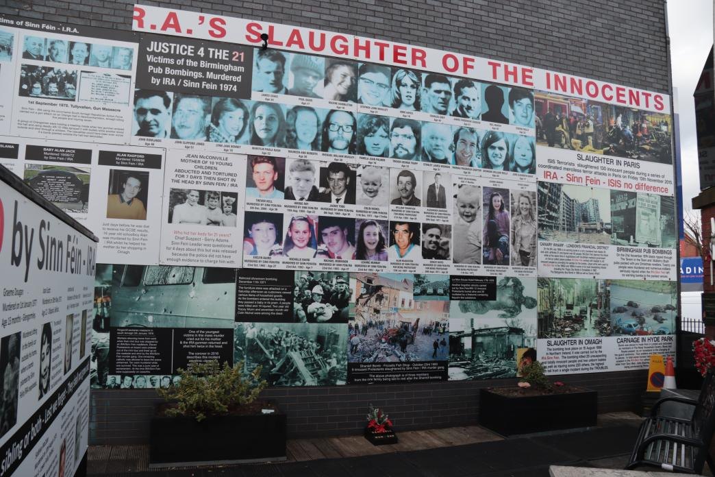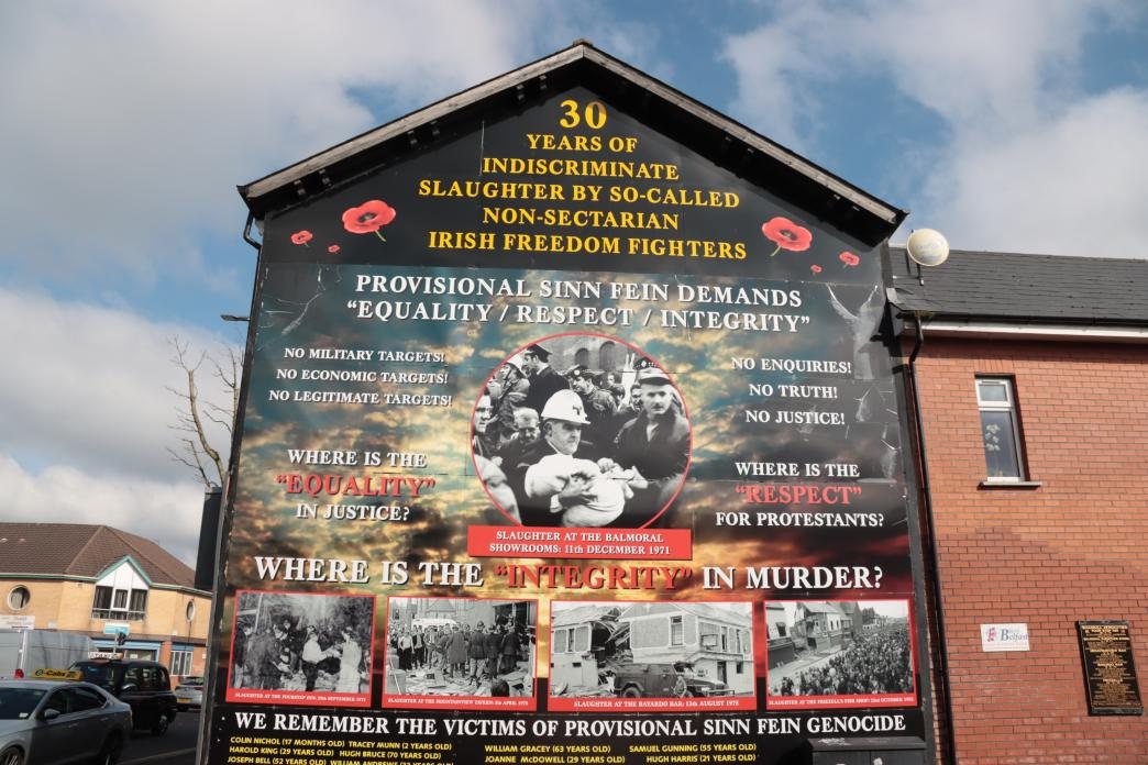 Für den Betrachter von besonderen Interesse dürften vor allem die Murals genannten Wandmalereien sein, mit denen die jeweiligen Konfliktparteien in Nordirland ihr Revier markieren. In den beiden Mural-Galerien habe ich auch solche Wandbilder aufgenommen, die nicht den Konfliktparteien zuzurechnen sind, sondern als Motive überkonfessioneller Programme wie Re-Imaging Communities in deren Revieren aufgetragen sind.